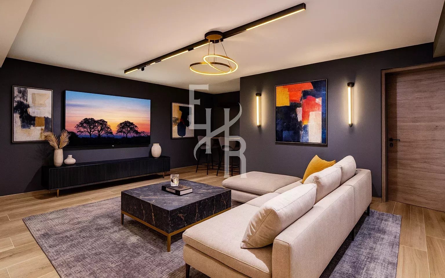 Au sous sol, vous disposerez d'une salle de jeux avec espace cinéma, parfaite pour les moments de détente en famille.