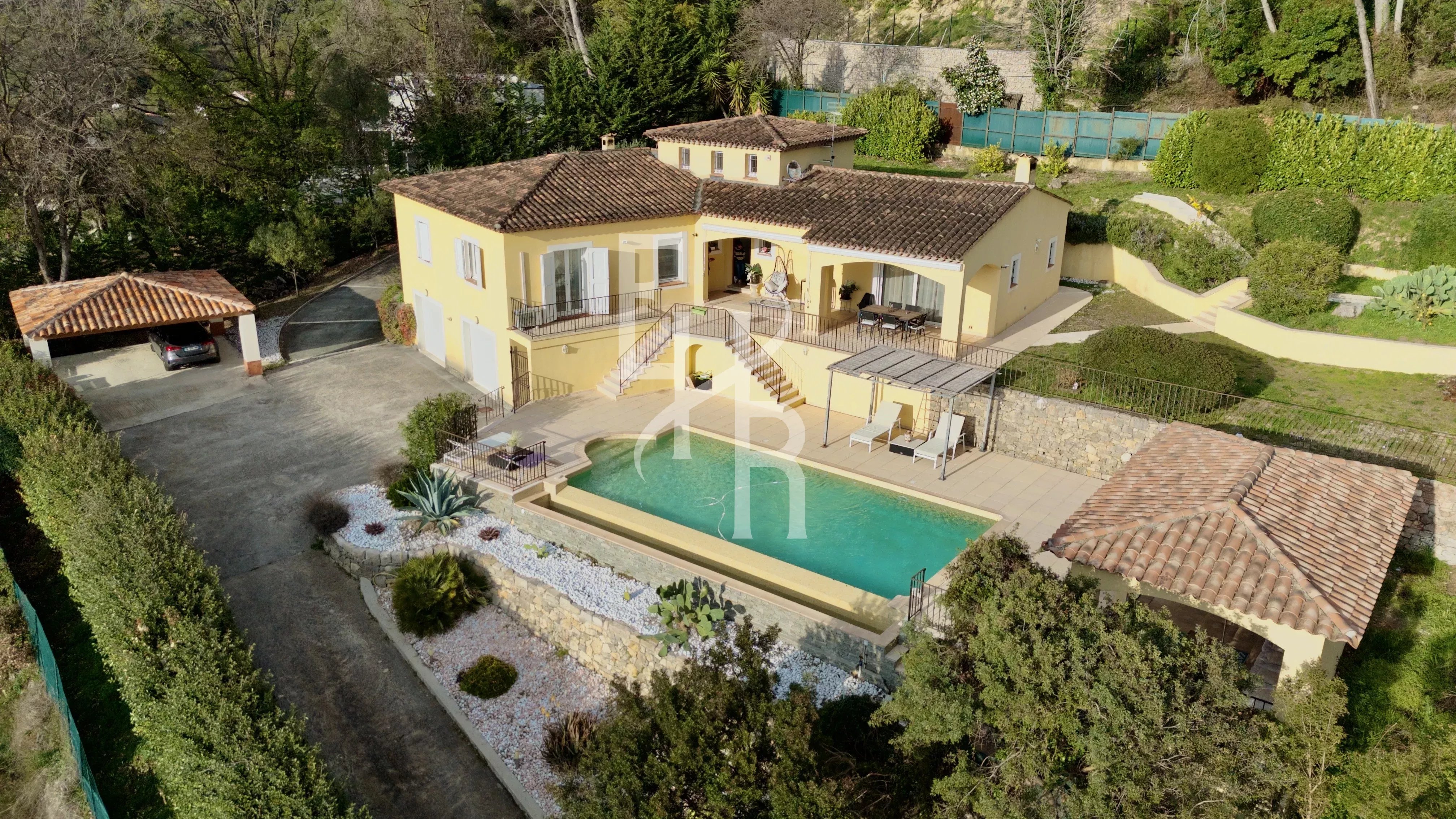 Située dans un environnement recherché de Mougins, à proximité du canal de la Siagne, cette villa d’environ 195 m² profite d’un cadre paisible et d’une belle vue dégagée sur les collines et la nature environnante.